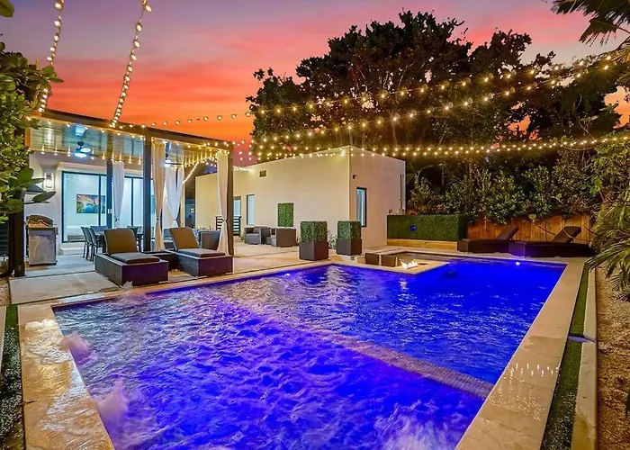 Situated around 5 minutes' walk from the lincoln Road mall "Pullman Mini Park", the 5-bedroom New Bali Resort Style Villa With Vast Pool & Jacuzzi And Outdoor Grilling Miami offers quick access to numerous city landmarks nearby. The property is located 2.5 km from the Lock & Load Museum and offers guests to relax in a hot tub available on site.